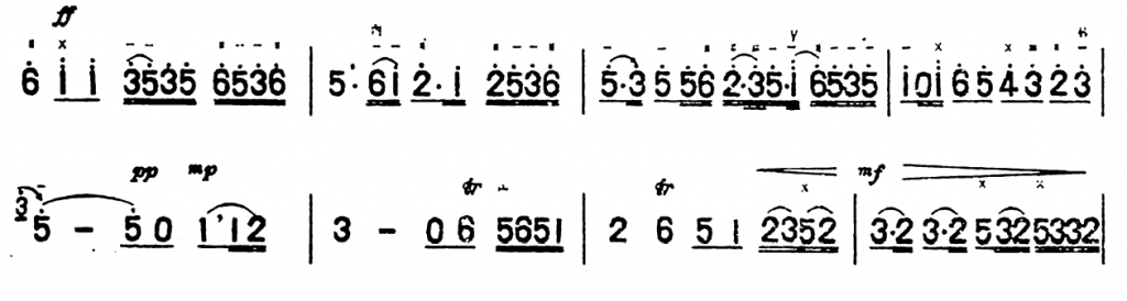 Another striking feature of the erhu is that the notation is different than western music. Instead of the lines and spaces of the Western staff, it’s all numbers.