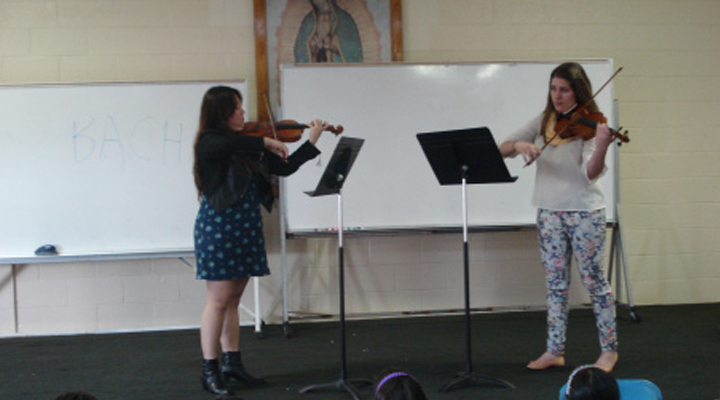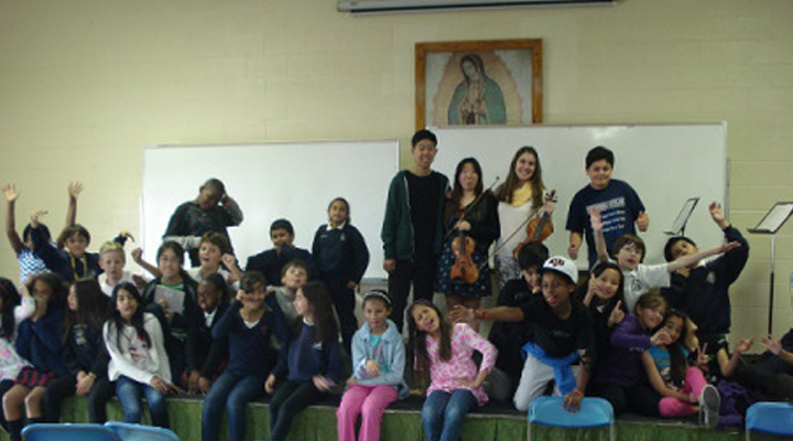Albert Einstein once said: “Imagination is more important than knowledge. For knowledge is limited, whereas imagination embraces the entire world, stimulatingprogress, giving birth to evolution.” As a young artist and leader, I firmly believe that it is my responsibility to inspire and connect with the public through classical music. Art is a universal language, whose impact endorses every individual’s ideas, regardless of their cultural background, socioeconomic status, age or personal beliefs. Art abolishes class and race, and in its essence is hidden the idea of universal validation of every human’s imagination, no matter how different and unconventional it may seem in the eyes of society. Inspired by Einstein’s words, I decided to dedicate my Arts Leadership Project to working with children, and that led me to the music students of the St. Anne Catholic School in Santa Monica, California.