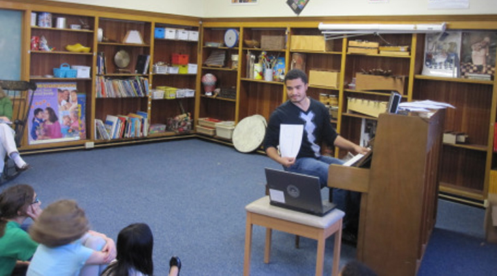 That is why I wanted to lead a seminar that exposed children to the idea of modern musical composition. I want to let kids know that beyond powdered wigs and old waltzes, beyond song-writers with guitars, and beyond pop-stars that there is a vibrant community of people composing modern classical music. For this seminar, I returned to my elementary school, the Polaris Program at Ebert Elementary in Denver, Colorado. In the same room I sat in when I was ten years old, first beginning to play the piano and write music, I sat at a piano in front of twenty children– ready to do the same.