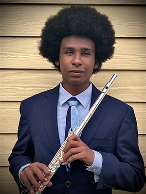 Alex Saddler (flute), 16, hails from Blue Springs, Missouri, and is a junior at Blue Springs South High School. He has been playing flute for five years. Through those five years Alex has performed with many youth ensembles throughout Missouri including the Blue Springs South High School Wind Symphony, Youth Symphony of Kansas City, Missouri All-State Band, and the Missouri Ambassadors of Music. These performances have led to venues such as Helzberg Hall at the Kaufman Center for Performing Arts and Carnegie Hall. He has also performed at the Mid-America Music Association Festival, winning Top Virtuoso in 2024.