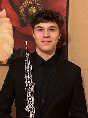 Alexander Vakov (oboe), 18, from Henderson, Nevada, is currently a senior at Coronado High School. Alex’s music education began at the age of four under the guidance of his mother, a piano teacher. He had the opportunity to pick up the oboe in seventh grade and is currently a student of Dr. Stephen Caplan, a professor at the University of Nevada, Las Vegas. Alex’s mother continues to perform with Alex and has been his collaborative pianist throughout his journey with the oboe. He credits her as being his biggest musical role model and inspiration, encouraging him to push his limits.