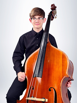 Jacob O’Toole (double bass), 17, hails from Kansas City, Missouri. He began playing the double bass in elementary school, during fifth grade. Two years later, he began taking double bass seriously after he joined the Metropolitan Youth Symphony in Arizona, where he met his private teacher, Nathaniel De La Cruz, who he has been studying with ever since. There, he slowly worked his way up to the principal position of the second highest orchestra after three years of learning and growth, gaining valuable experience in orchestral playing and section leadership. He then moved to Kansas City in 2022 during his second year of high-school, where he began to flourish as a musician, joining and becoming principal of the Youth Symphony of Kansas City, and later principal of the Missouri district and all state orchestras. Along with this, he also competed and won first place in the 23′ Northland Symphony Young artist competition, where he was able to debut the first movement of the Vanhal concerto with orchestral accompaniment, developing his skill in solo performance. Most recently, he started taking lessons from Joseph Nunez, a member of the Kansas City Symphony, and was accepted as a member of the Eastern Music Festival, joining their 2024 season. There, he had the opportunity to perform alongside fantastic peers and learn from amazing faculty, as well as learn and perform challenging repertoire and endure an overall strenuous program.