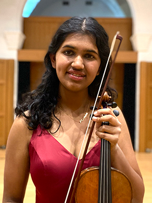 Mallika Sheshadri (violin), 18, from Altadena, California, is a senior at Pasadena High school and studies with Aimée Kreston at the Pasadena Conservatory of Music, where she also plays violin and viola in the chamber music program. She’s played in masterclasses for Catherine Coseby, Ryan Meehan, Roberto Cani, Dennis Kim and Moni Simeonov, and has won top honors in the Dan Stover Rotary competition, the Southern California Junior Bach Festival, the MTAC VOCE competition and the Glendale MTAC Concerto competition. Recently, she performed the Chausson Poéme with the Santa Clarita Symphony Orchestra as the winner of their concerto competition. She is concertmaster of the Pasadena Youth Symphony Philharmonic and is the winner of their concerto competition. During the summers, she has participated in the Sounding Point Academy at the Colburn School, Interlochen Arts Camp, and the Chamber Music Intensive at the Pasadena Conservatory of Music. As a fellow in From the Top’s Musicians and the Environment Initiative, she is working with the conservancy group AltadenaWILD on using music to raise awareness for the delicate ecosystems of Southern California. In addition to music, she loves science, especially astronomy, as well as reading, long walks, and playing with her dog, Noodle.