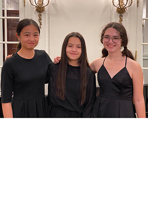 The Piano Trio was formed after Laetitia Ji (piano), 16, Anna Kehayova (violin), 16, and Sophia Fortuin (cello), 16, met at Summer Music at the Rivers Conservatory in 2018 and had such a wonderful time and so many common interests that they wanted to keep playing together. They have been coached by Laura Blustein at the New England Conservatory Prep School since 2019.