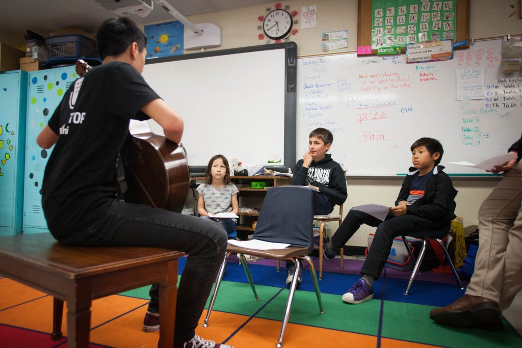 Nicholas plays for students at Little Opera in San Francisco